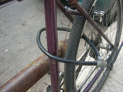 Η τυχερή μέρα του κλέφτη ποδηλάτων και υποψιάζομαι όχι και η δική μου. Ούτε καν να ξέρει να ανοίξει μπλοκάζ όπως στην ερώτηση 1 δεν χρειάζεται. Σηκώνει λίγο το ποδήλατο και έφυγε. Αν βρει και ένα κομμάτι σπάγκο για να μην κρατάει την κλειδαριά συνέχεια, θα φτάσει στο λιμέρι χωρίς να πιαστεί καν το χέρι του.