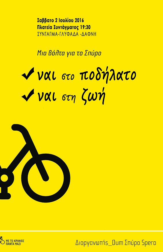 Μια βόλτα μνήμης για το Σπύρο και ταυτόχρονα μια πορεία διαμαρτυρίας για τους ανθρώπους που χάνονται άδικα στην άσφαλτο.