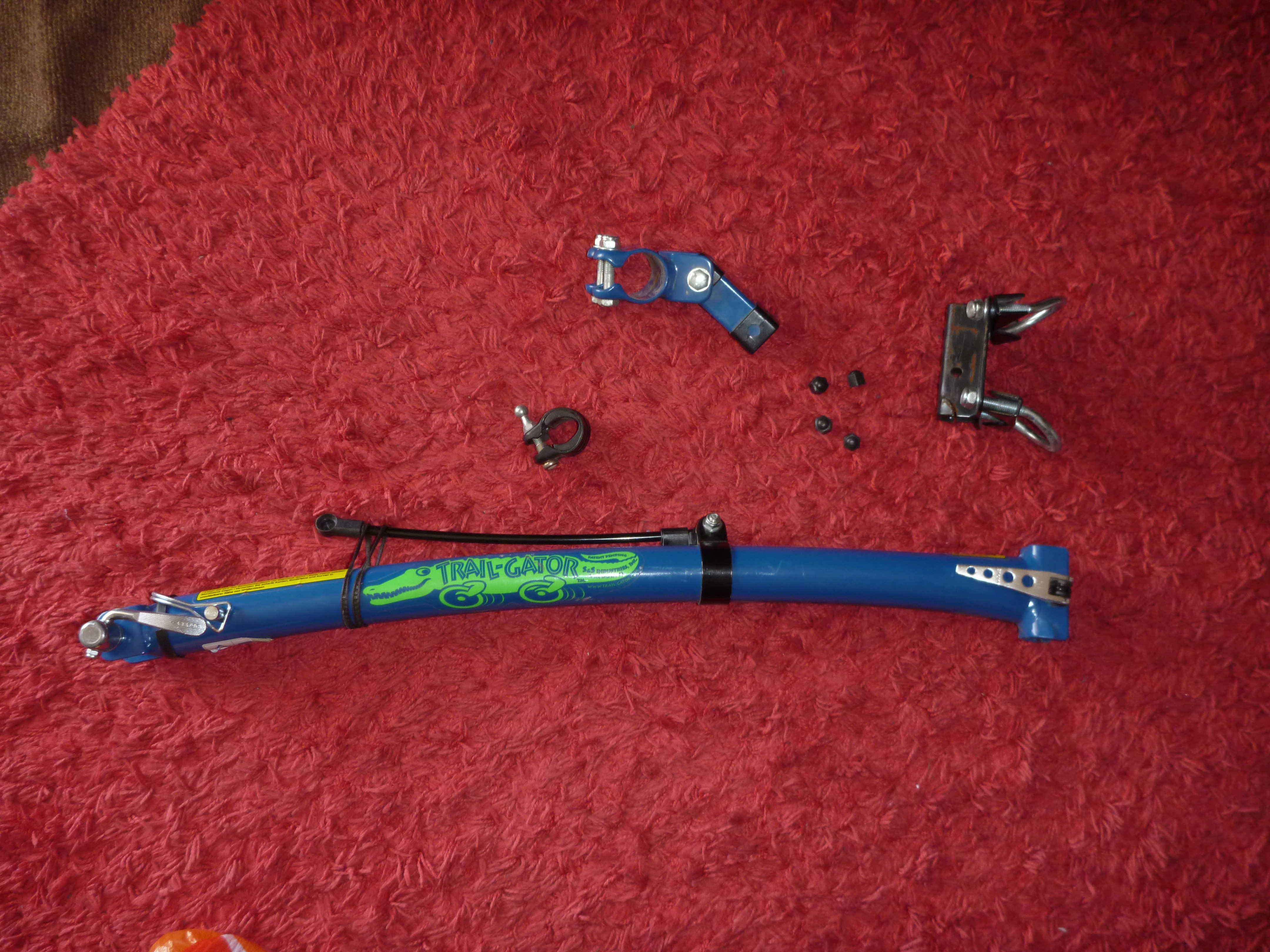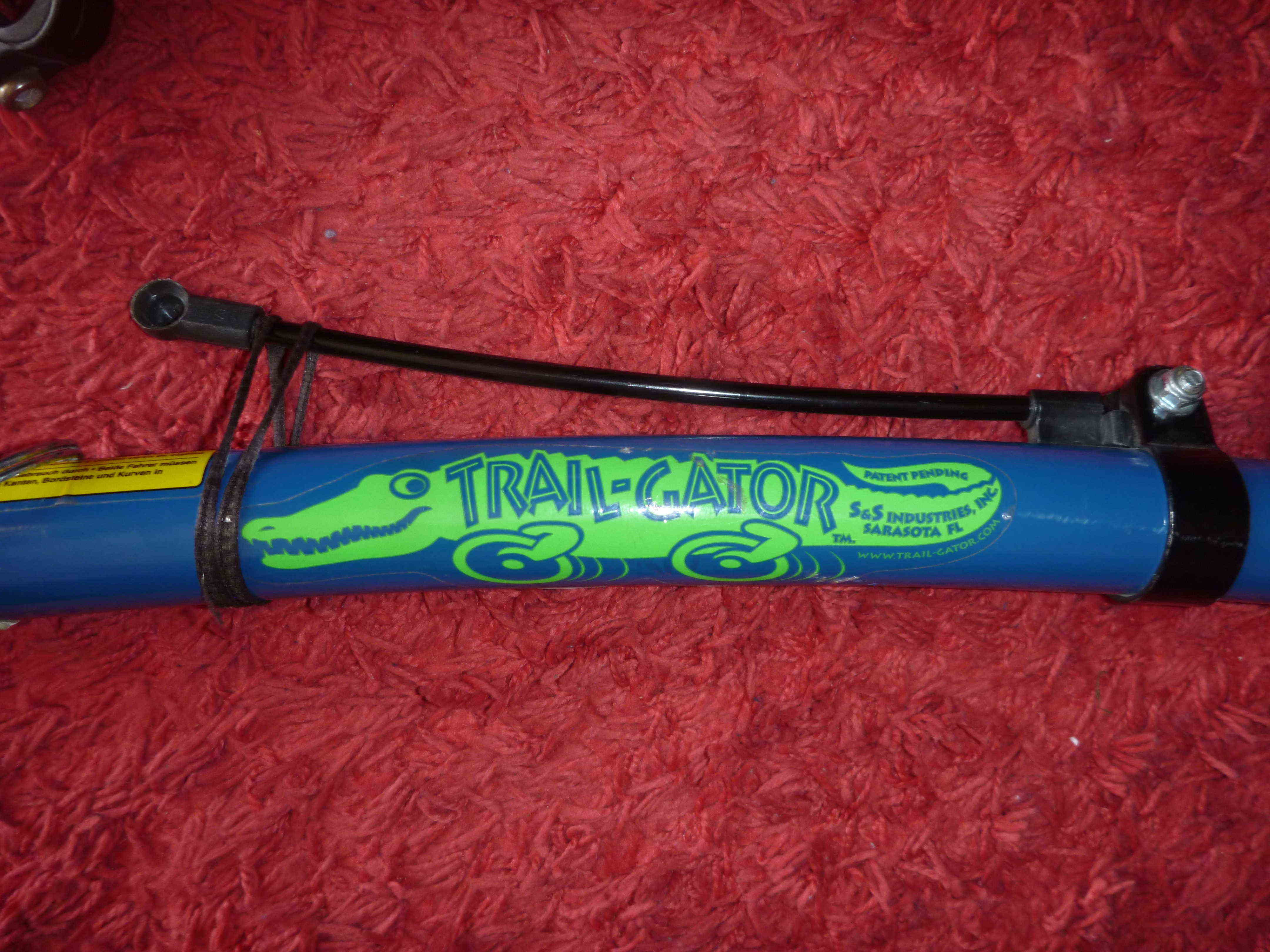 Μπάρα ρυμούλκησης Trail-Gator που συνδέει το παλουκόσελο ποδηλάτου ενηλίκου με το σκελετό παιδικού ποδηλάτου, σηκώνει τη μπροστινή ρόδα του τελευταίου και καθιστα δυνατη την ταυτόχρονη ποδηλασια και των δύο. Είναι σα να μετατρέπει το ποδηλατο σε διπλό. Δειτε τα βίντεο.