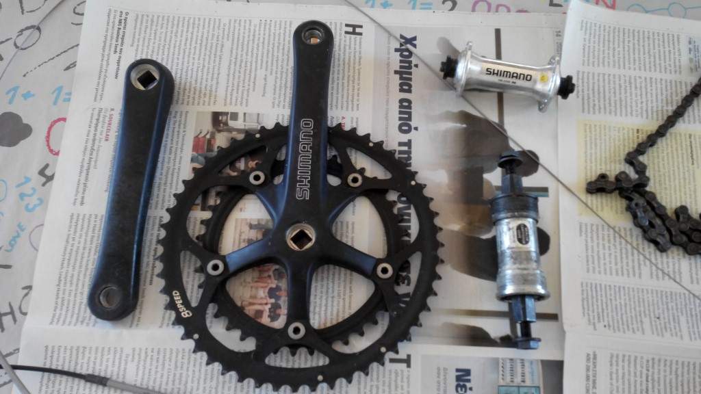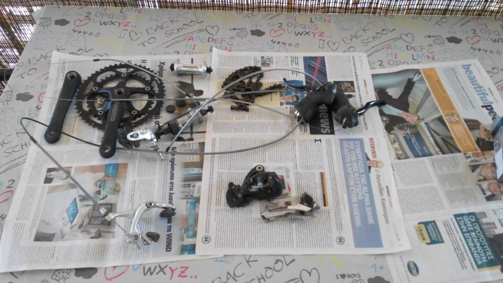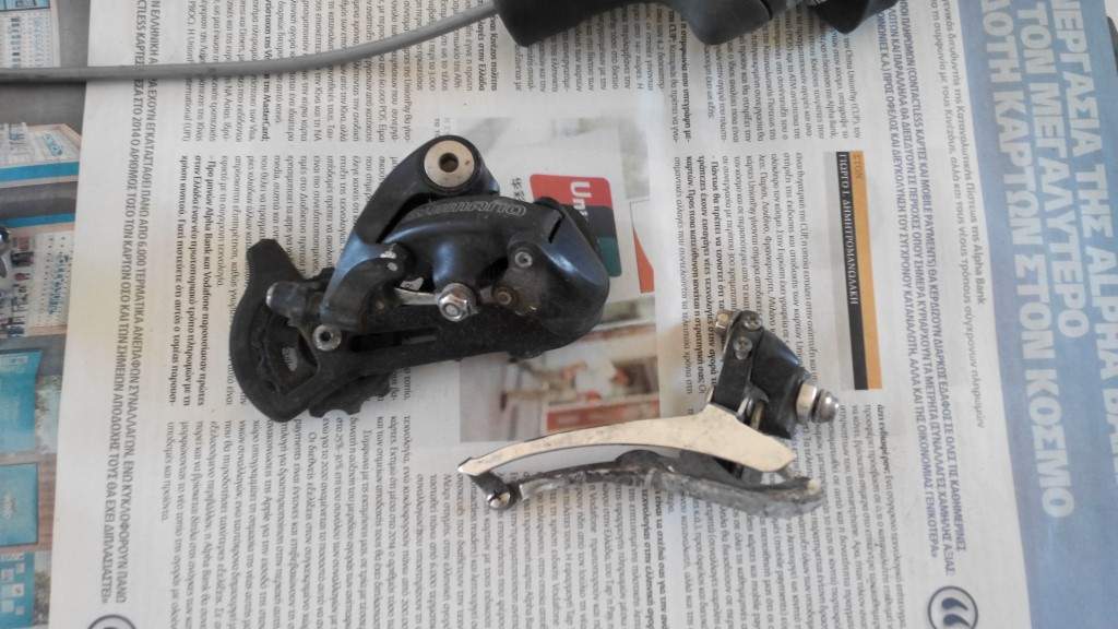 Απο ενα κουρσακι εχω τα παρακατω, ειναι λειτουργικα. Για να αποφυγουμε παρεξηγησεις θα προτιμουσα ο αγοραστης να δει απο κοντα τα εξαρτηματα για να κρινει μονος του. Δισκοβραχιωνας Shimano 2200 52X39 Χειριστιρια κουρσας Shimano 2200 για 2Χ8 ταχυτητες Ντεραγιε μπρος-πισω Shimano 2200 για 2Χ8 ταχυτητες Μεσαια τριβη Shimano Φρενα κουρσας Orbea Συρματοσχοινα για ολα αυτα Υπαρχει και η αλυσιδα αλλα εχει βγαλει σημαδια σκουριας. Τιμη 80ευρω, περιοχη Π.Φαληρο, τηλεφωνο 6979663818 Για να αποφυγουμε παρεξηγησεις θα προτιμουσα ο αγοραστης να δει απο κοντα τα εξαρτηματα για να κρινει μονος του.
