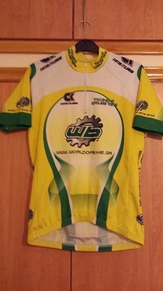 2. Ρουχισμός: 1 μπλούζα κοντομάνικη (medium €15), 1 φόρμα campagnolo (medium €20), γιλέκο νυχτός (€5), μανίκια (€5), γάντια (€5), όλα επώνυμα.