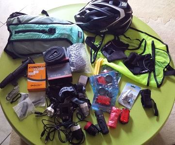 3. Αξεσουάρ: 2 παγούρια (€10), θήκη (€5), σακίδιο πλάτης με δοχείο νερού 2 λίτρων (€10), 2000 lumen μπροστινό φως ΚΑΙΝΟΥΡΙΟ (€25), πίσω φως (€3), polar παλμογράφος (€35).