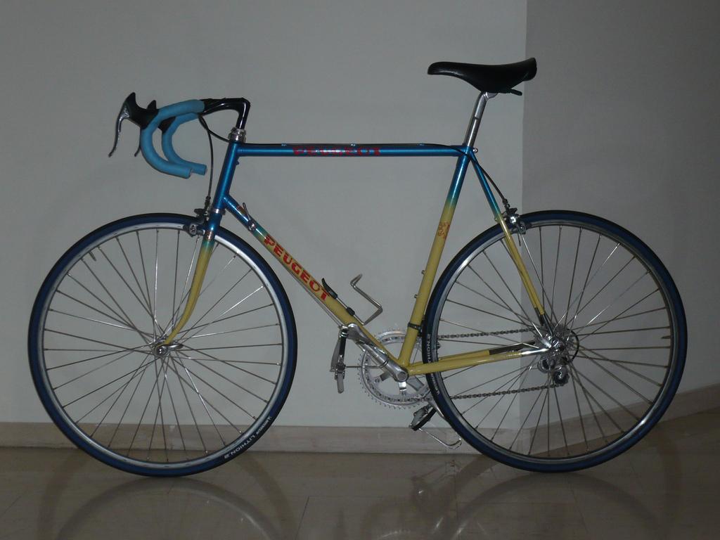 Μέσα στο '11 αγόρασα πλαίσιο-πιρούνι, new old stock, το παρακάτω εικονιζόμενο Πεζάκι του 1989. Πρόκειται για σχετικά σπάνιο κομμάτι , δεδομένου του γεγονότος, ότι η Peugeot, πριν γίνει Cycleurope, σε χειροποίητα high end ατσάλια, "έπαιζε" κατά κύριο λόγο tubesets της Reynolds. Για το 1989, ανάλογα με τη χώρα, το ίδιο πλαίσιο (ίδιες μουφες, άκρα, κορώνα, BB shell, γεωμετρία και χρώμια) ήταν διαθέσιμο σε Reynolds 653, 753 και Columbus SLX. Αρκετά από τα περιφερειακά Shimano 600 σειρά 6400 μεταφέρθηκαν από το Schauff που ανάδειξε ο SteliosP (πολύ καλή δουλειά Στέλιο!) τα υπόλοιπα αγοράστηκαν NOS, με εξαίρεση τα ποτήρια και το παλουκόσελο, που ήταν φορεμένα στο πλαίσιο με την αγορά. Μόνη απώλεια η μεσαία τριβή, που όταν κατάφερα να τη βγάλω από το Schauff ήταν σκέτο χάλι. Μετά από λύσιμο, καθάρισμα και λίπανση των εξαρτημάτων, μονταρίστηκαν όλα στο Peugeot και voila!!