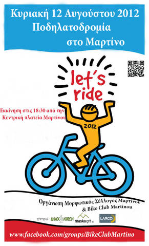Ο Μορφωτικός Σύλλογος Μαρτίνου σας καλεί στην ετήσια ποδηλατοδρομία που θα πραγματοποιηθεί στα πλαίσια της εβδομάδας νεολαίας .