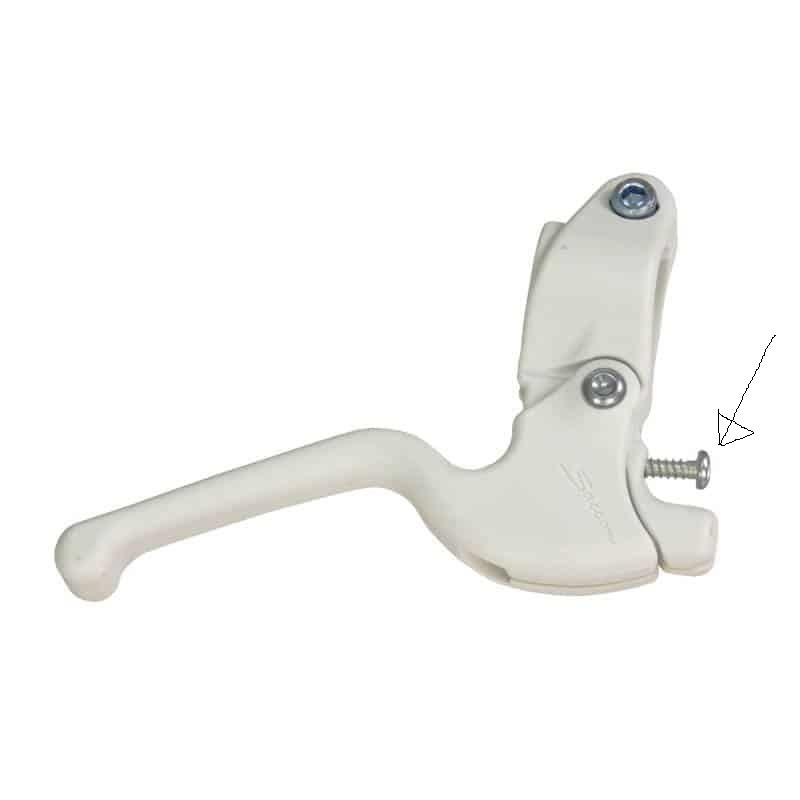 Η μανέτα φρένου παιδικού ποδηλάτου έχει μια βίδα, όπως φαίνεται στη φωτο.Ποια είναι η χρησιμότητά της; Η μια βίδα έφυγε από τη μανέτα, γιατί έσπασε ένα πολύ μικρό κομάτι πλαστικού στο οποίο βιδώνει. Αλλά δεν μπορώ να καταλάβω τι κάνει , αφού δεν ρυθμίζει τίποτα, λειτουργεί όπως πριν το φρένο.
