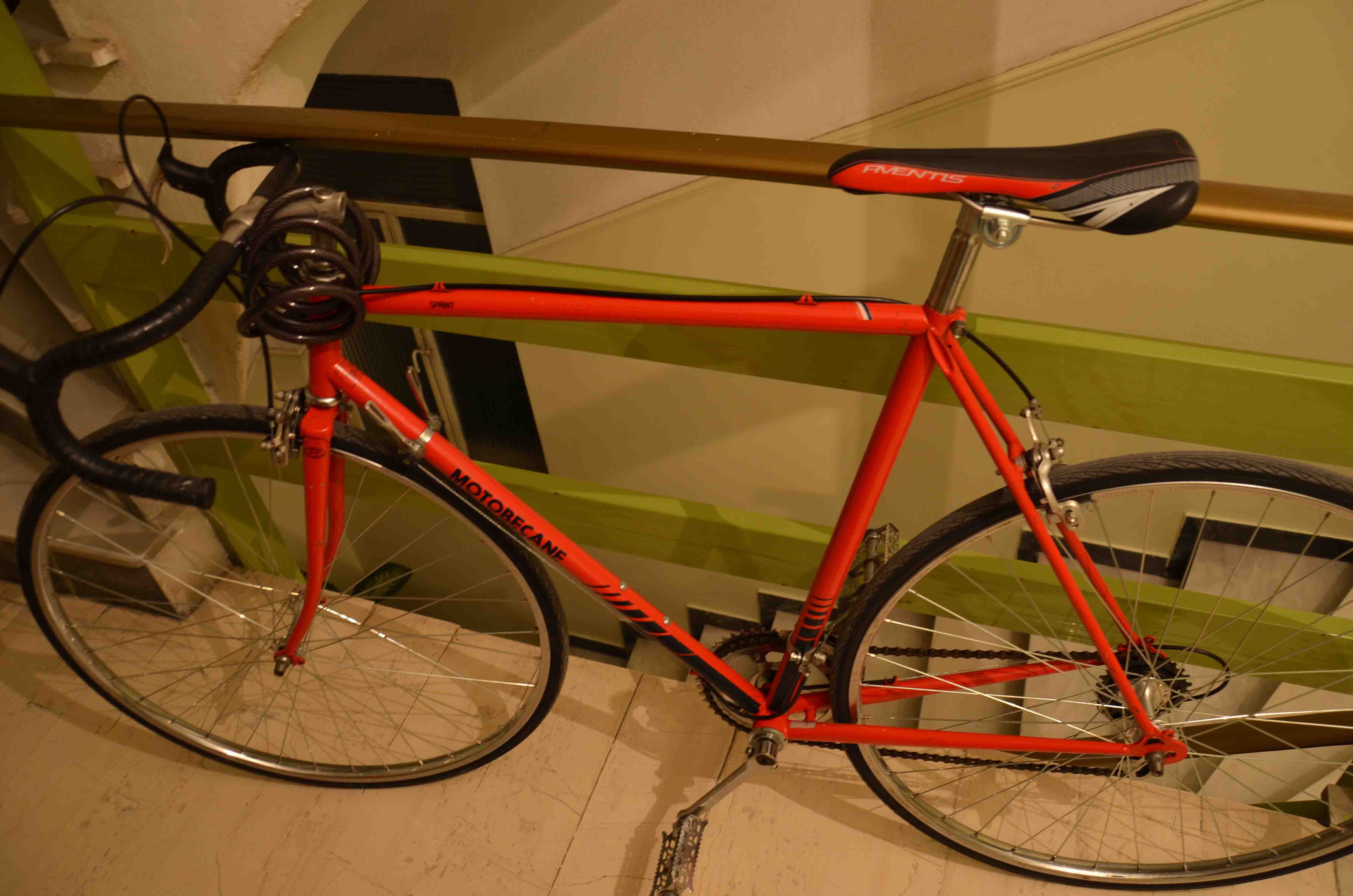 Αφού του είπα για το παλιό Velosolex του πατέρα μου, το οποίο με μεγάλη όρεξη θα συμμόρφωνα λίγο, αλλά μου πέφτει μεγάλο, τον ρώτησα αν μπορεί να βρει καμιά παλιά κούρσα για να την σενιάρουμε. Και εκεί γυρνάει και μου λέει πως πήρε από έναν πελάτη ένα παλιό Motobecane το οποίο το φτιάχνει. Όταν τον ρώτησα αν το πουλάει μου απάντησε με άνεση "ναι, γύρω στα 200 ευρώ". Πήγαμε λοιπόν στο άλλο δωμάτιο του μαγαζιού όπου ο πατέρας του έπλεκε καινούριες ζάντες για την Γαλλιδούλα. Την μετρήσαμε, την βρήκαμε στα μέτρα μου, και κλείσαμε ραντεβού για την επόμενη μέρα που θα την είχε έτοιμη, για να την δοκιμάσω...