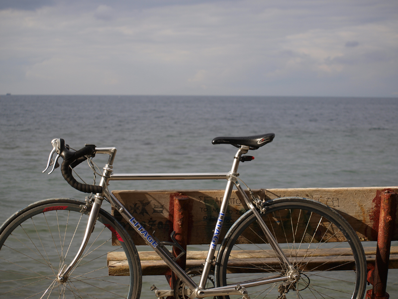 Το ποδήλατο είναι όπως ακριβώς το γέννησε η μαμά του, εκτός από την σέλα, τις ακτίνες στους τροχούς και τα λάστιχα. Σήμερα του αγόρασα καινούρια ταινία για το τιμόνι. Είναι εξαιρετικό στον δρόμο, και φυσικά απίστευτα όμορφο.