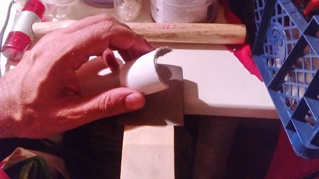 Τέλος χρησιμοποιούμε ένα κομμένο πλαστικό σωλήνα, καλυμμένο με το ίδιο μαλακό ύφασμα για να καμπυλώσουμε το καπάκι.