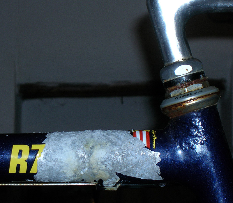 Χρόνια πολλά παιδιά από καρδιάς, αλλά τι είναι αυτό; Έχω πάθει σοκ. Χρόνος που έγινε; Θυμίζει σπηλαιολογικό τοίχωμα. Κι επειδή εμένα με πιάνει υστερία με τις γρατζουνιές, έχω μια ερώτηση καίρια. Γιατί το άφησε να γίνει έτσι; Δεν το έβλεπε όσο γινόταν να το προλάβει; Παρεμπιπτόντως, λάβετε υπ' όψιν ότι η Brompton πουλάει μέσω συγκεκριμένων πωλητών στην Αγγλία και φυσικά on line, φιαλίδια με δείγματα μπογιάς από όλα τα χρώματά της, για μερεμέτια στους σκελετούς της. Ήδη μερεμέτισα το τρέκινγκ μου, που είχε γίνει μαντάρα, μάλλον από αποτυχημένη απόπειρα κλοπής, σε διάφορα σημεία και φυσικά μερεμέτισα και το Brompton που μου είχε πέσει κάτω γλυστρώντας από το πολύ φόρτωμα κι επειδή βαρέθηκα να το στήσω στη σκάρα του ως όφειλα. Τα μερεμέτια έγιναν με επιτυχία.