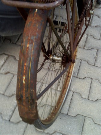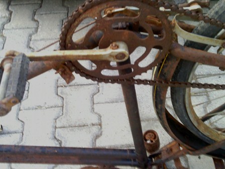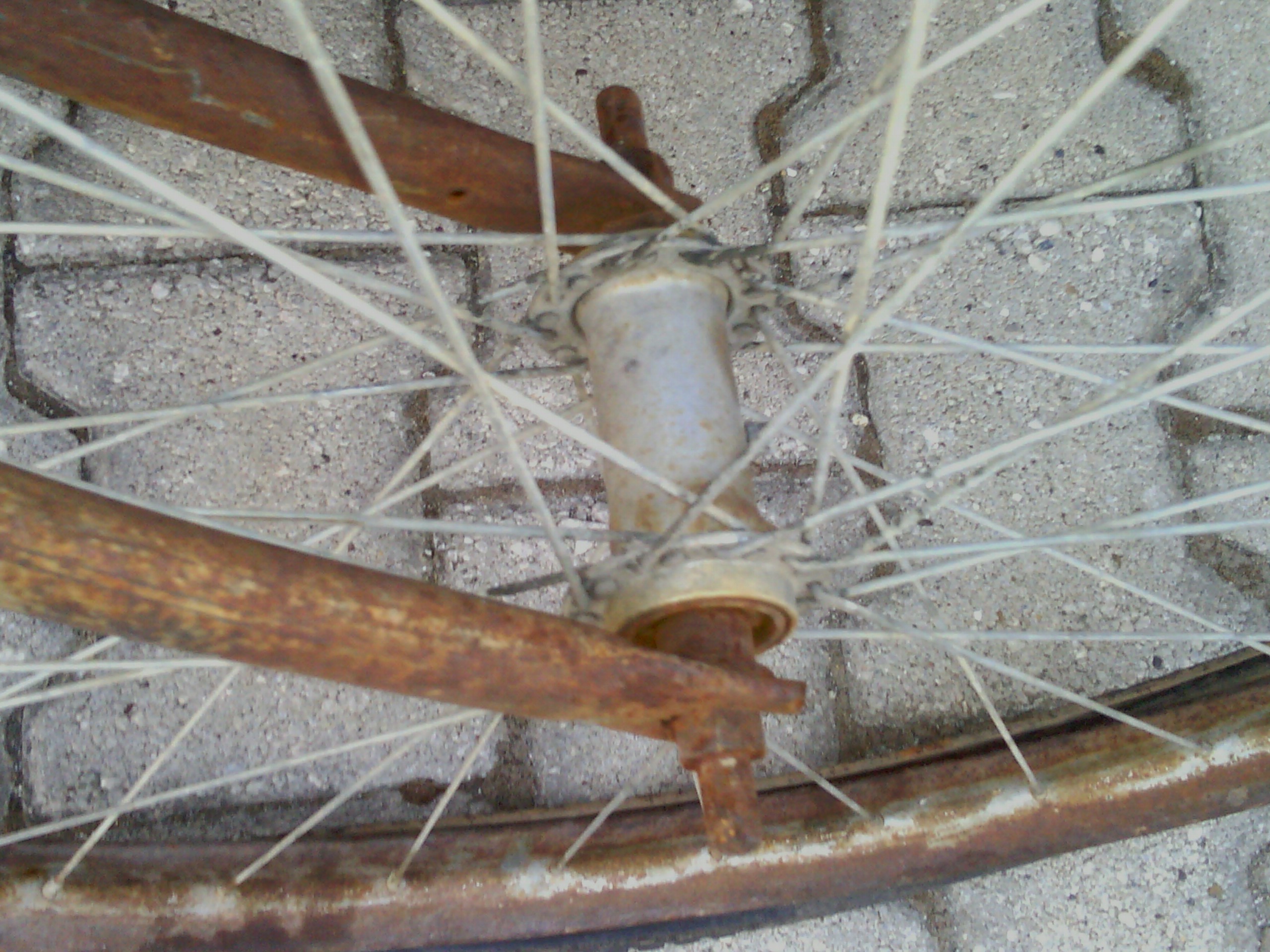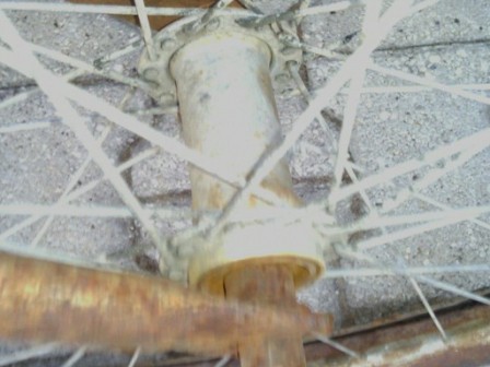 4. Κέντρο πίσω τροχού EASTMAN, οι ακτίνες τις πίσω ζάντας πολύ πιό χοντρές από τις του εμπρός τροχού.